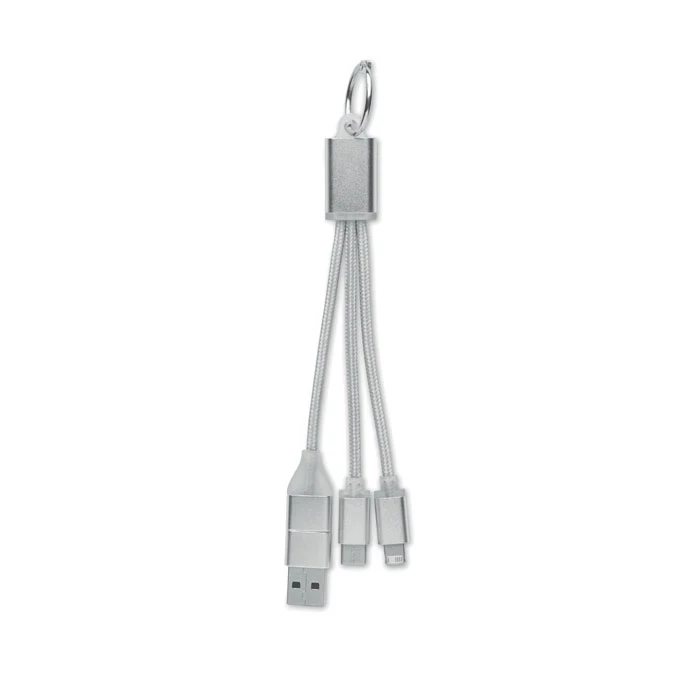 Brelok do kluczy z kablami do ładowania z wejściem: 2 w 1 typu C i typu A oraz micro-B (2 w 1 pin) i wyjściem typu C.