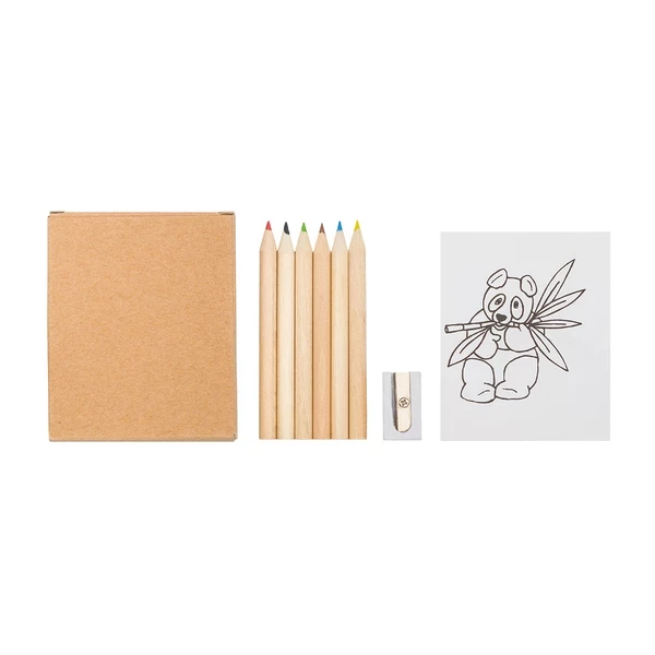 składa się z 6 kredek, temperówki i 20 kolorowanek.